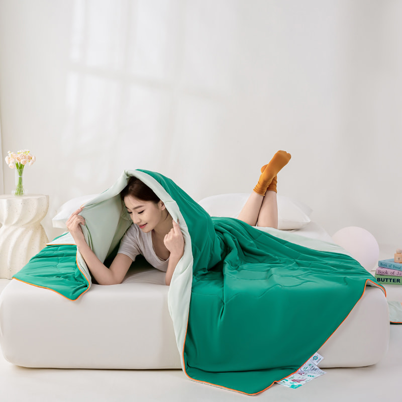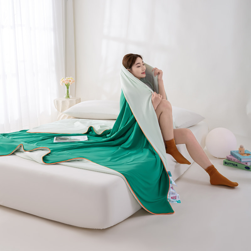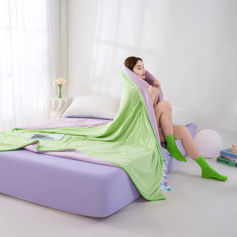 วัสดุ: ผ้าห่มระบายความร้อนในฤดูร้อนนี้ทำจากสแปนเด็กซ์โพลีเอสเตอร์และเต็มไปด้วยโพลีเอสเตอร์ เย็นนุ่มและเนียน